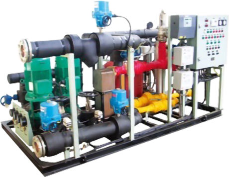 船用定壓裝置是將船舶中央空調(diào)循環(huán)冷(熱)媒水系統(tǒng)中的換熱、冷(熱)水循環(huán)、定壓、排氣、補水、過濾、水處理及電氣控制等諸多功能集于一身的成套組裝式船用設備。裝置由采暖換熱裝置(板式換熱器)、蒸汽流量調(diào)節(jié)閥組、疏水閥組、定壓膨脹隔膜罐、自動排氣裝置、壓差控制器、補水隔離裝置、離子水處理器、及電動、手動閥件和控制單元等組成。